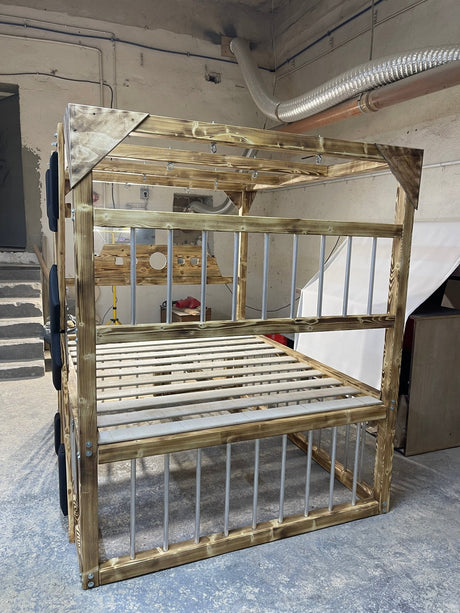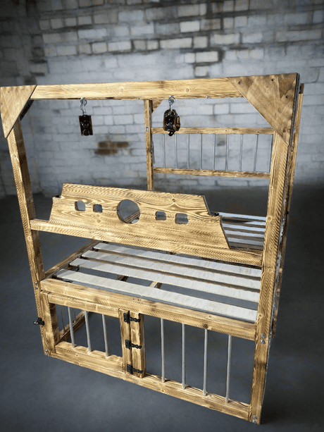 King Size BDSM-Inspired Wooden Bed with Cage & Restraint Options