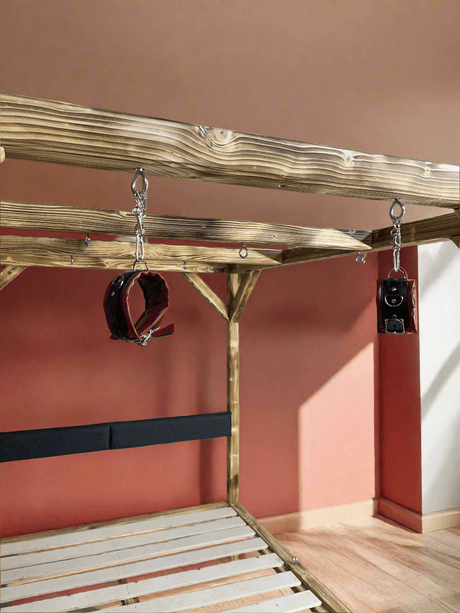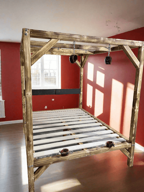 Handcrafted BDSM Wooden Bondage Bed – Elegant & Functional Adult Play Furniture