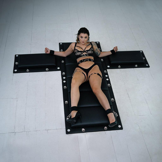 You have the flexibility to use it as a cross or just the central two pieces, depending on your preference. The attachment points can be utilised with carabiner-type clips or rope, depending on the nature of your session.