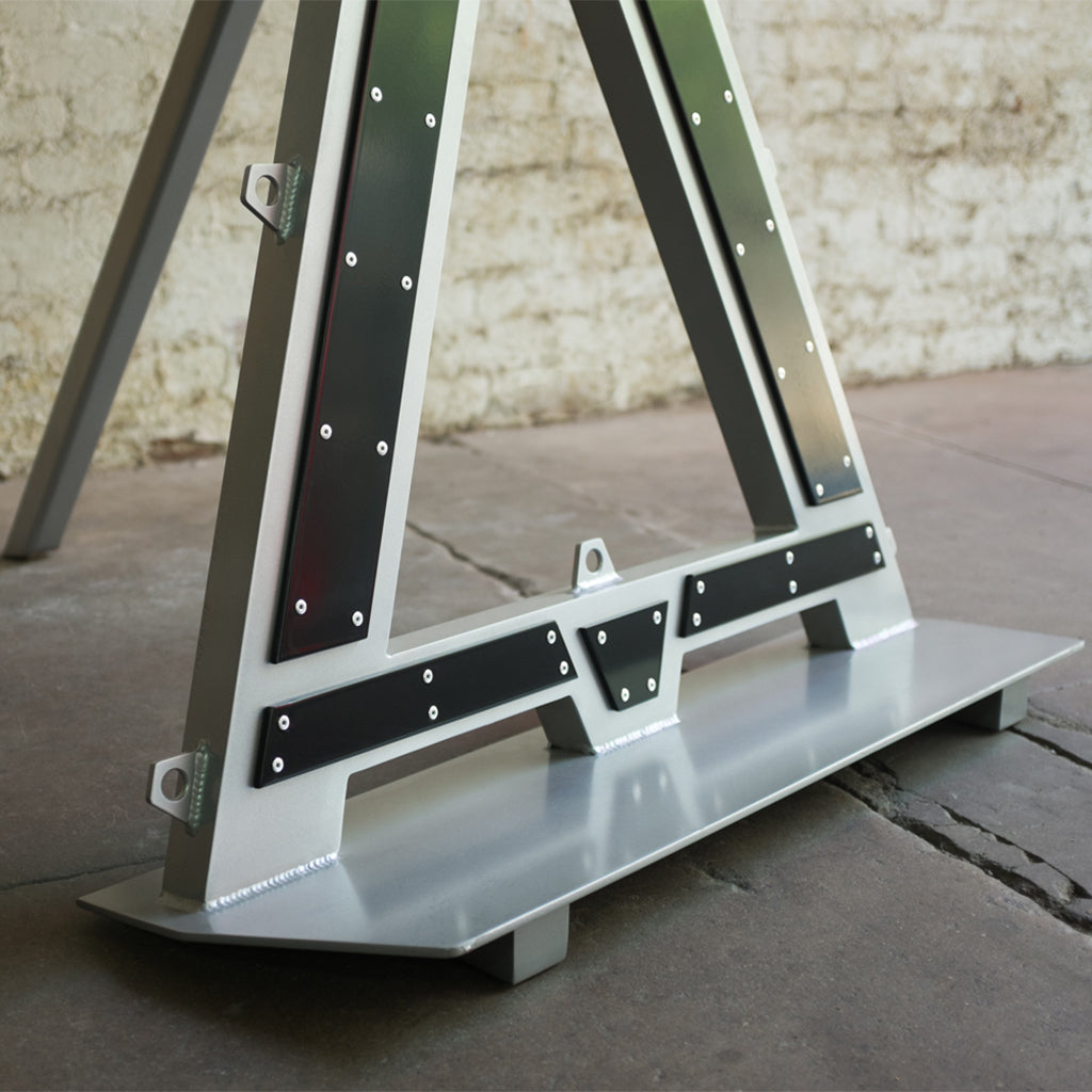 The New St. Andrew's Cross X is truly a work of art--and play! A free-standing base allows tops and bottoms to feel stable and comfortable. Special toe cutouts make it possible for bottoms to keep their balance during play, and multiple fully TIG-welded attachment points mean the options are limitless when it comes to your imagination. And with marine-grade aluminum construction, two-tone powder coat finish, and washable black leather vinyl, this piece looks and feels amazing.