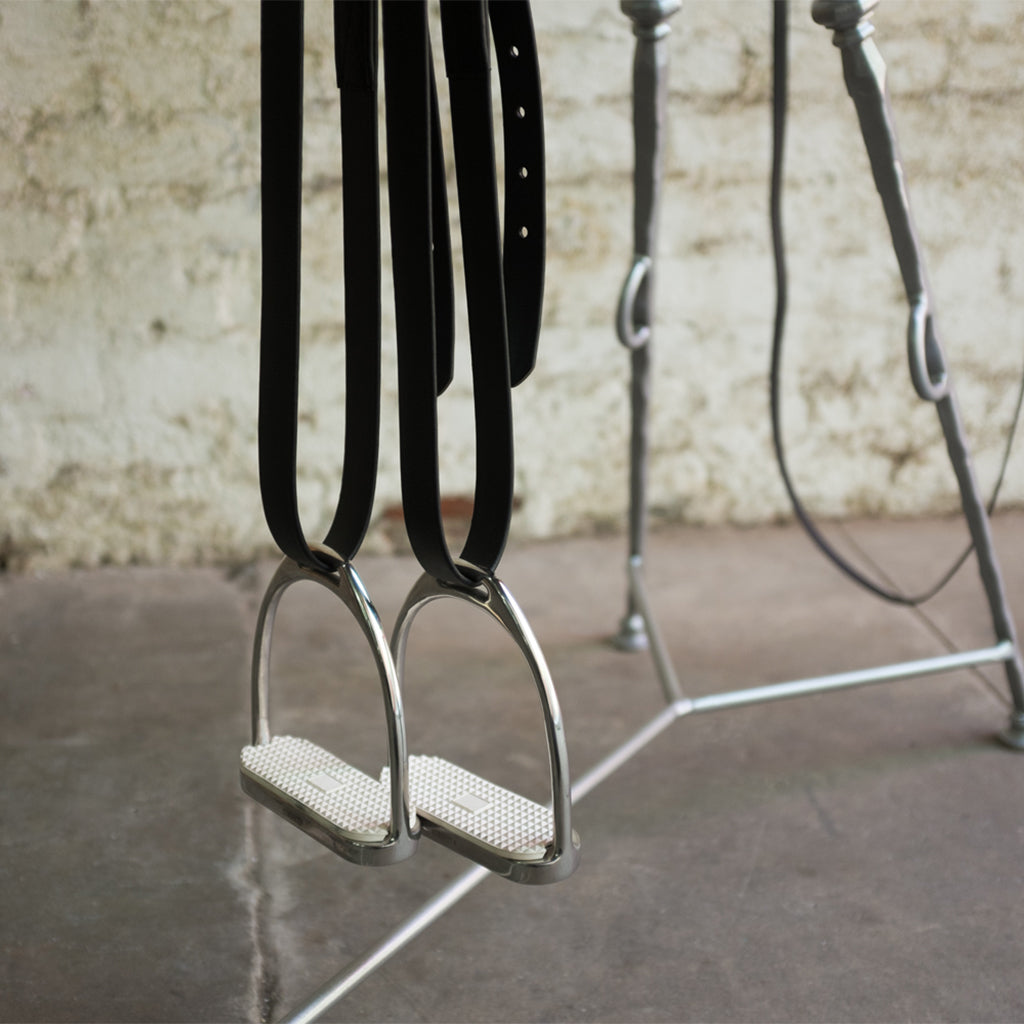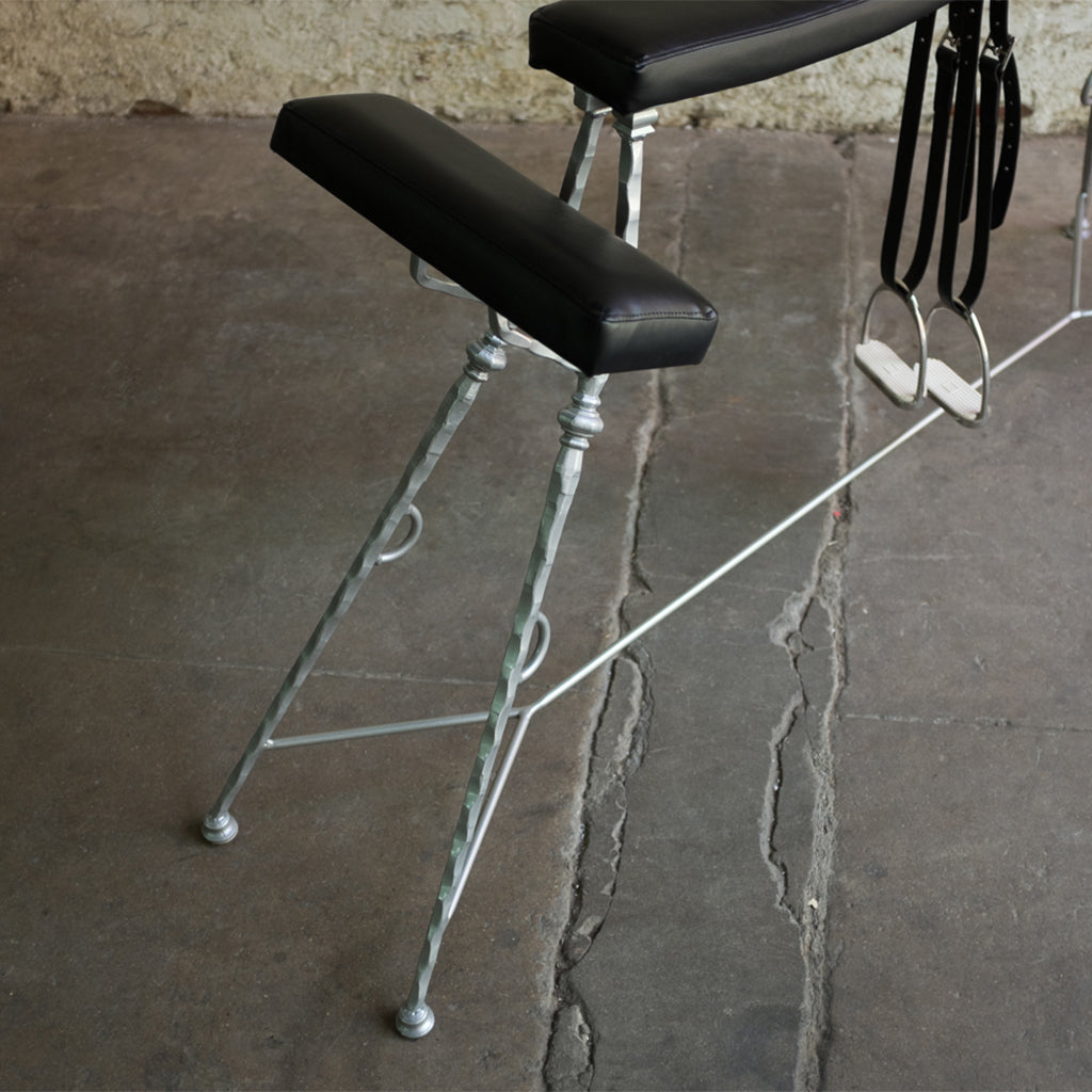 This has been called the ultimate pony play spanking horse for good reason. With English leather stirrups, comfortable reins, an adjustable kneeling pad, and a black saddle, all attractively studded with nickel, this pony is comfortable, versatile, and elegant enough to become a centerpiece of any play space.