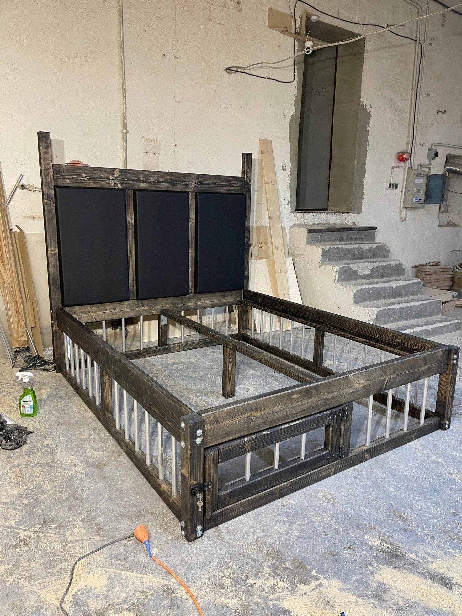 Handcrafted King Size BDSM Wooden Bed – Unique Restraining Options